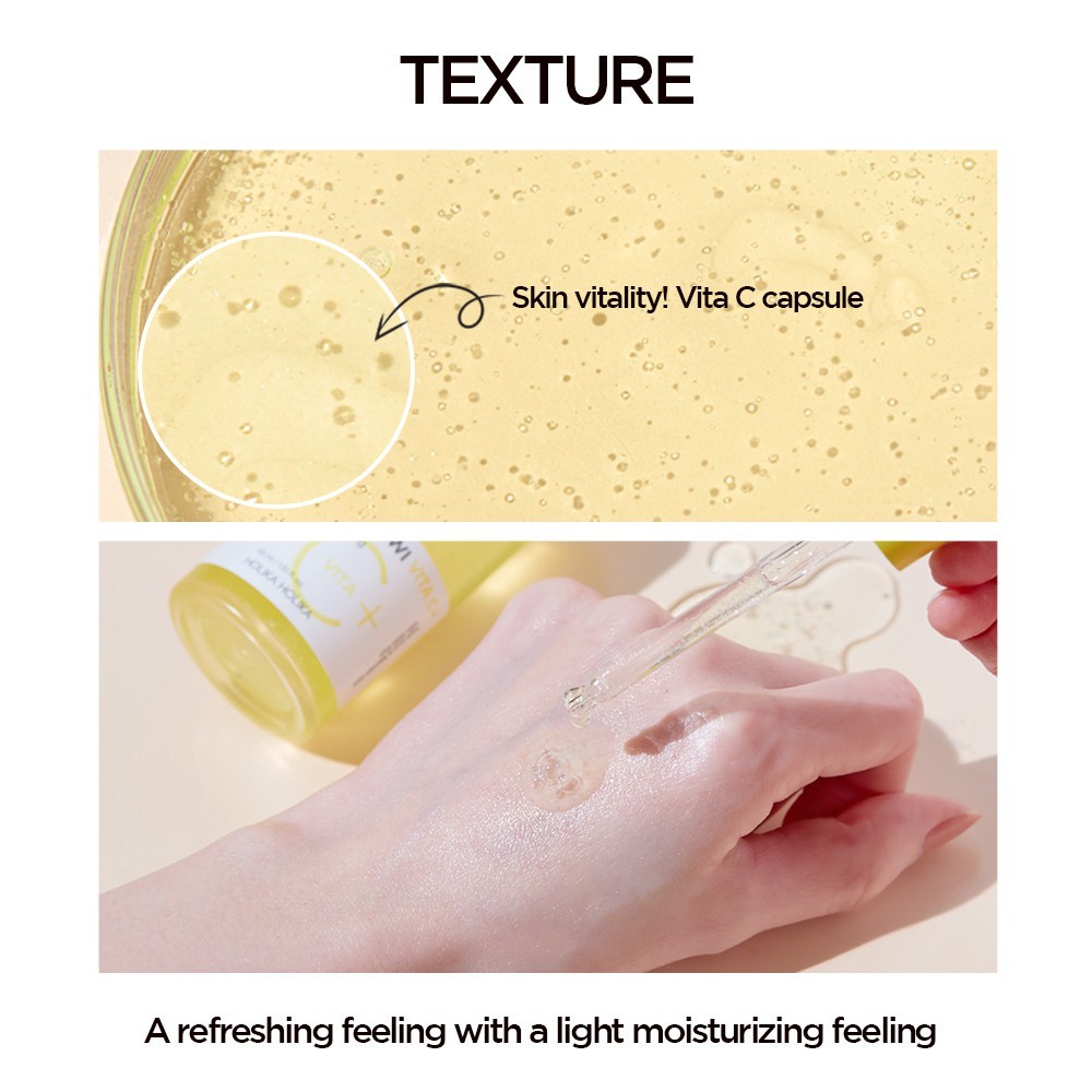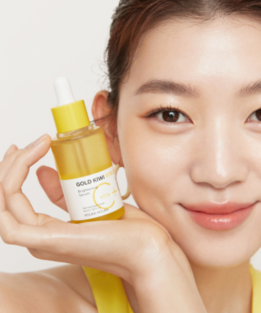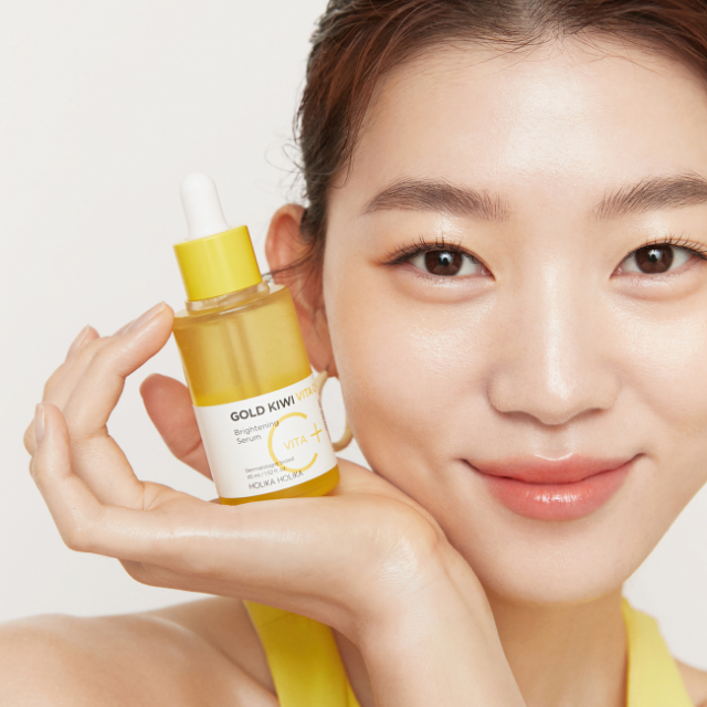 This set contains HOLIKA HOLIKA’s Gold Kiwi Vita C Plus Brightening Serum in two sizes, accompanied by a pack of cotton pads. Highly moisturizing, the serum is enriched with 97.5% vitamin-rich gold kiwi extracts to revitalize and brighten skin.