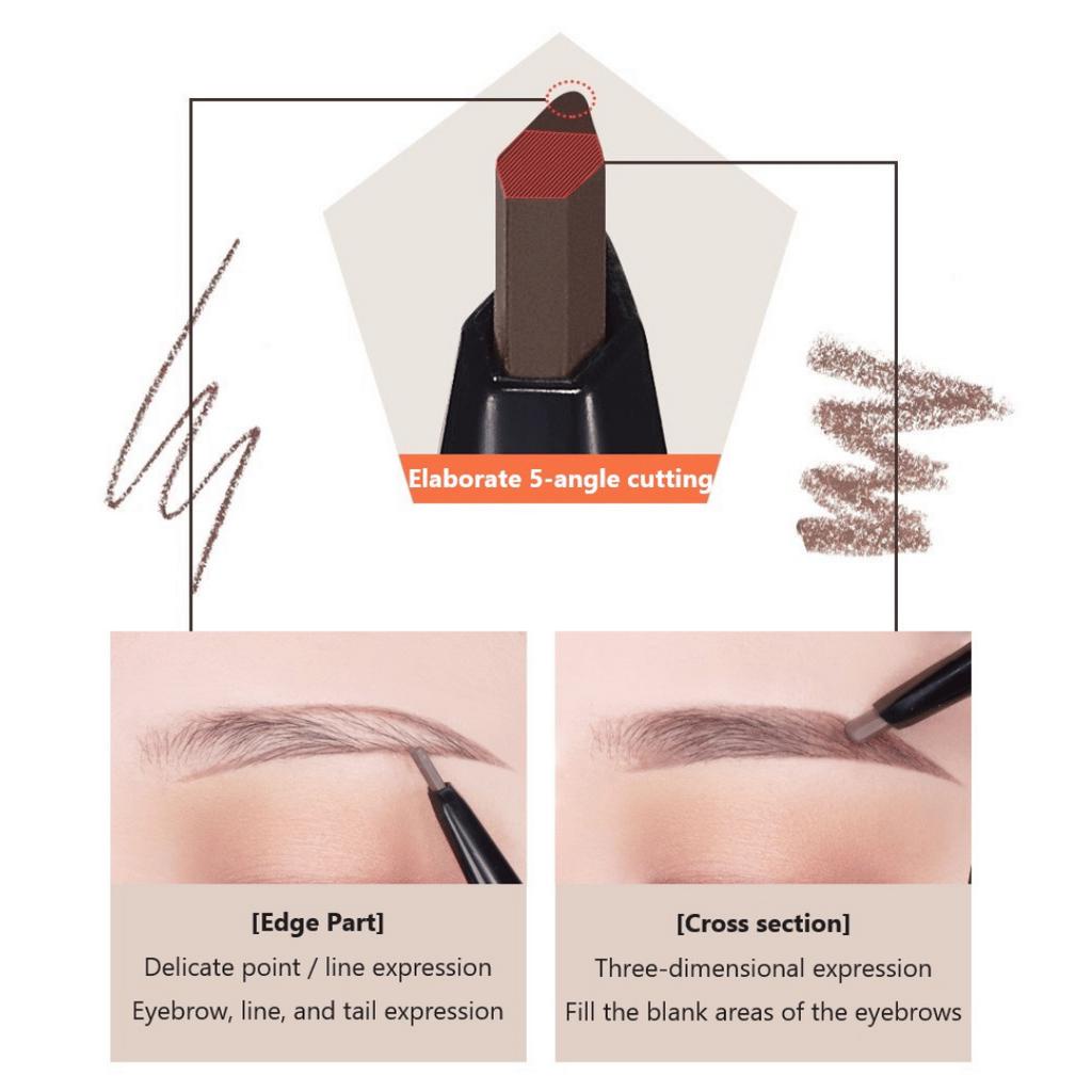 Introducing our precision-engineered brow drawing tool, featuring a unique five-angle penta-shape for delicate and three-dimensional results. This innovative design effortlessly expresses dots, lines, and sides, expertly filling gaps and sculpting exquisite eyebrows.